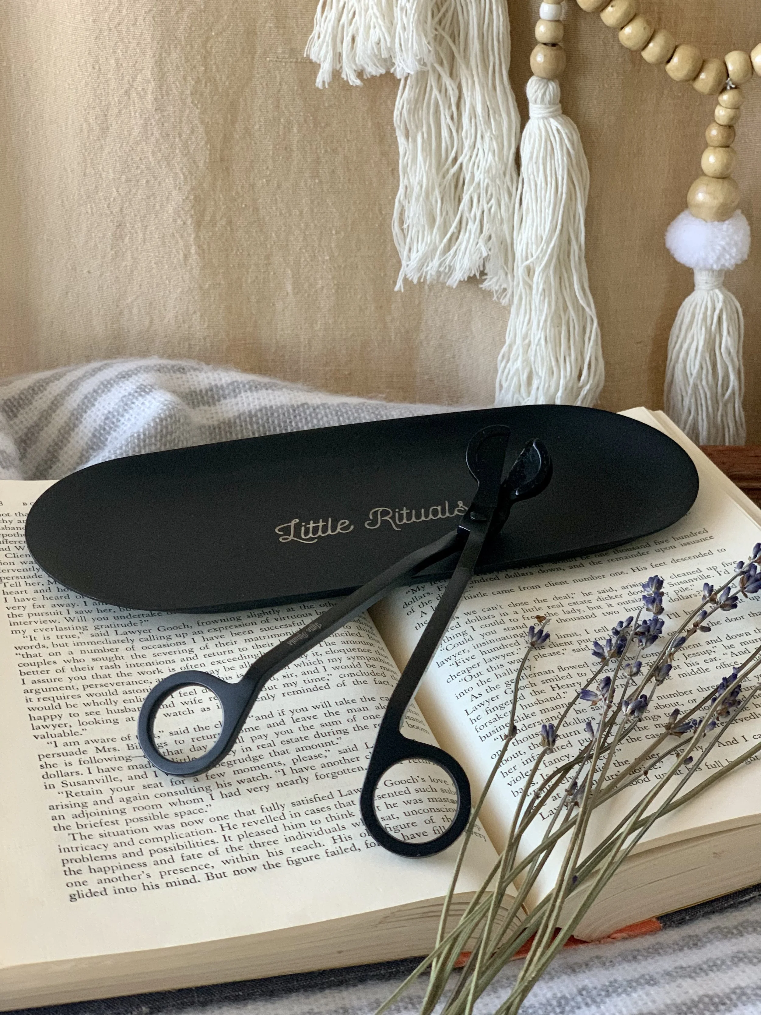 Wick trimmer - Trim your wicks to 1/4” before burning, this will prolong your candles burn time and keep your vessels clean from soot.